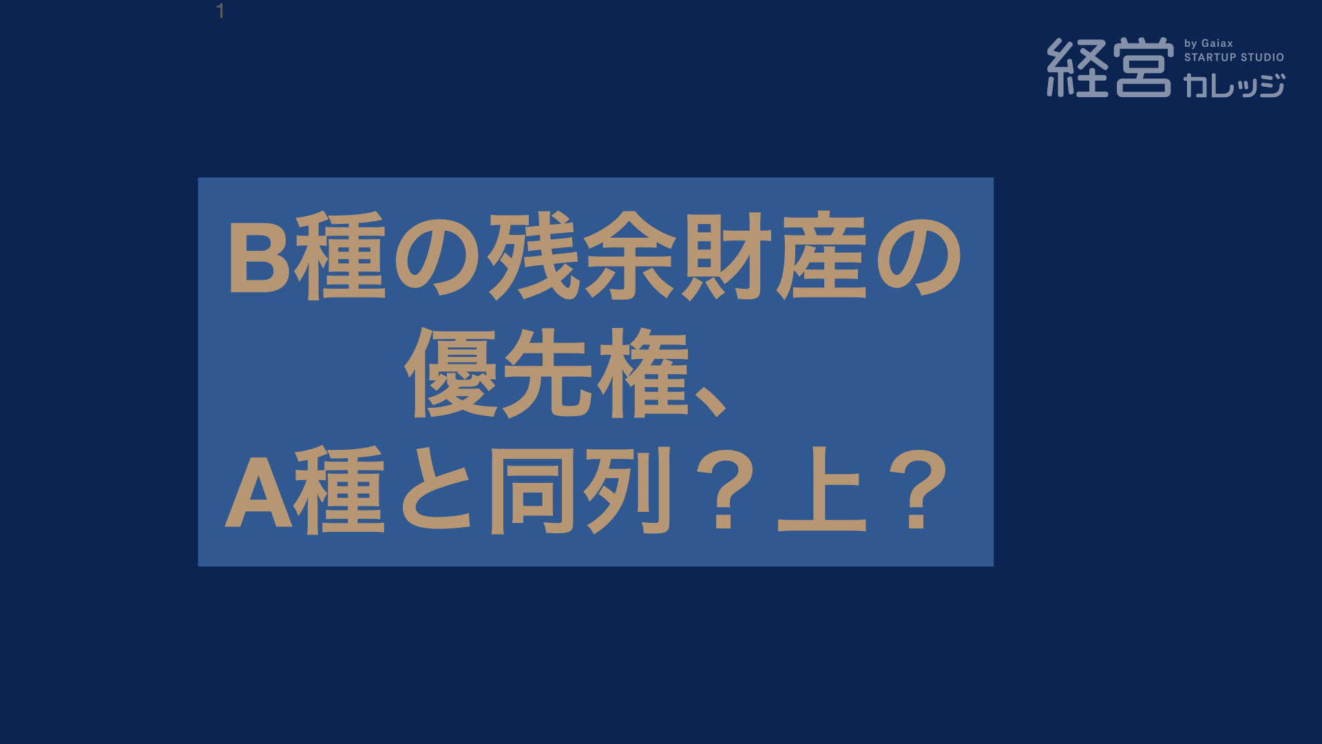 今日は、普通株主がいてA種株主がいて、その後、B種株主が出てきた時に、そのB種株主の残余財産の 分配の優先権というのは、A種と同列なのか、A種より優先されるのか ということについて、話していきたいと思います。